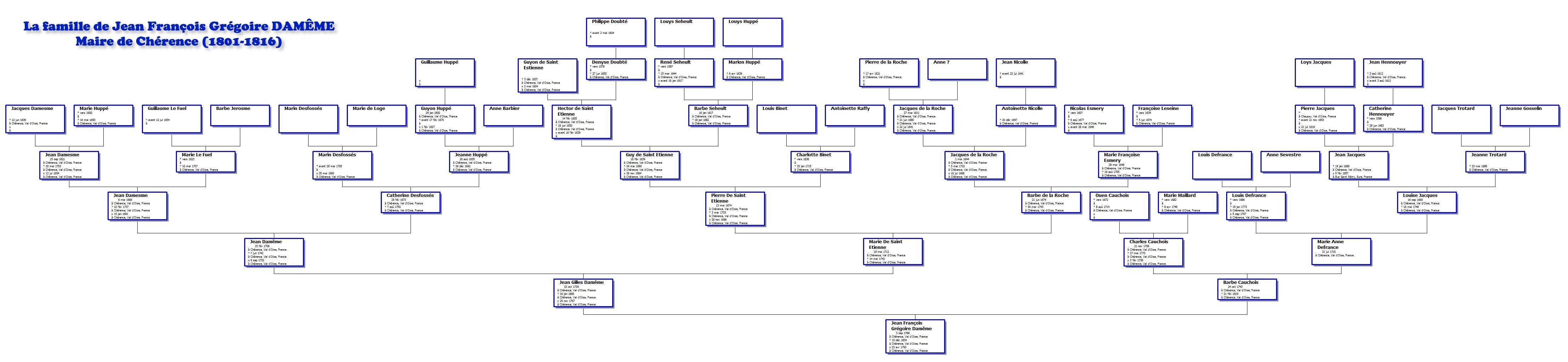 Les arbres généalogiques des maires qui ont des racines chérençaises.- Généalogie ascendante de Jean François Grégoire DAMÊME -PDF- -JPG-