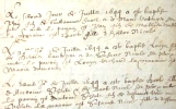 Un nouveau registre est ouvert le 1er janvier 1676 par Charles Fortin, prêtre curé et le premier acte enregistré à cette date est celui de l’inhumation de Noël Esmery, prêtre curé. De 1676 à 1688, les actes seront alternativement signés par Charles Fortin, François Renou et Aubry. A partir de 1689, c’est Jean de Villerval, curé de Chérence qui signe les actes jusqu’en 1701. Les actes sont signés ensuite Louis de France ou Petit.